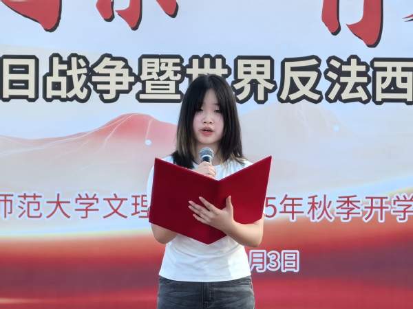升旗仪式上学生代表陈思雨以“铭记抗战精神,共筑学风长城”为主题作国旗下演讲,她表示,回望中国人民抗日战争与世界反法西斯战争岁月,无数青年以学为战、以志为矛、用知识与信念筑牢救亡图存的防线。这份“勤学救国、励志担当”的精神,正是MK(中国)“勤学、善思、励志、诚信”学风的深层底色。她向全体同学发出倡议,如今的我们更要不断加强学风建设,以实际行动在民族复兴的伟大征程中书写青春篇章。