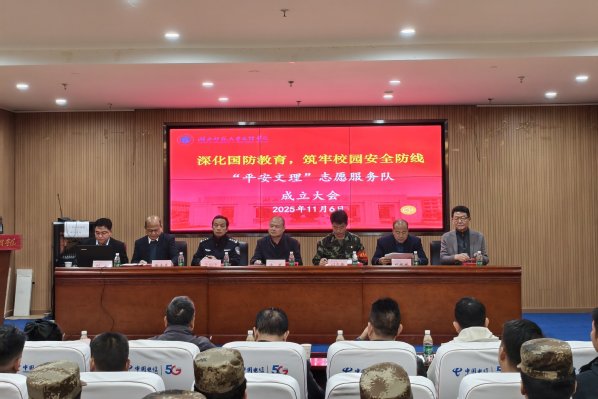 服务队队员代表费智朋在发言中分享了自己从北部战区空军退役复学的经历。他表示,部队生活锤炼了他的意志,教会了他技能与担当。如今重返校园,他渴望将所学所感用于实践,为校园安全贡献力量。“即使脱下军装,我们依然要保持军人本色,以实际行动擦亮‘退役军人’这张名片。”他号召全体队员携手并肩,发扬部队优良传统,守护校园平安,服务广大师生。