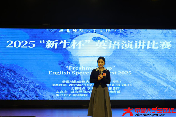 “从小镇教室的琅琅书声到国家‘双一流’建设的宏伟蓝图,我将个人的求学梦编织进伟大的教育强国梦中……”11月26日晚,MK网页版学术交流中心,一位参赛选手正用流利的英语娓娓道来。这里正在举行的,是备受瞩目的“新生杯”英语演讲比赛决赛。六百余名师生齐聚一堂,共同聆听了一场以“My ‘Chinese Dream’ as a Young College Student”为主题的英文思想盛宴。教务部部长刘江燕围绕“青年大学生的中国梦”主题寄语参赛学子。外国语学院院长郑桃云鼓励选手以自信从容的姿态,展现新时代大学生的精神风貌。