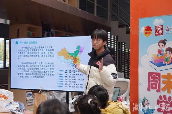 活动伊始,三位来自经管学院的志愿者“哥哥姐姐”,以“植物里的非遗密码”为主题开启趣味课堂。他们结合华中地区常见植物及各自家乡特色植物,用童趣盎然的语言拆解植物与生活的紧密关联;更聚焦五倍子、蓝靛泥、茶叶、桂花等传统染材,通过实物展示、互动问答等形式,生动解读“一片叶子能染色”的非遗智慧,让孩子们直观感受植物与传统文化的深厚羁绊。