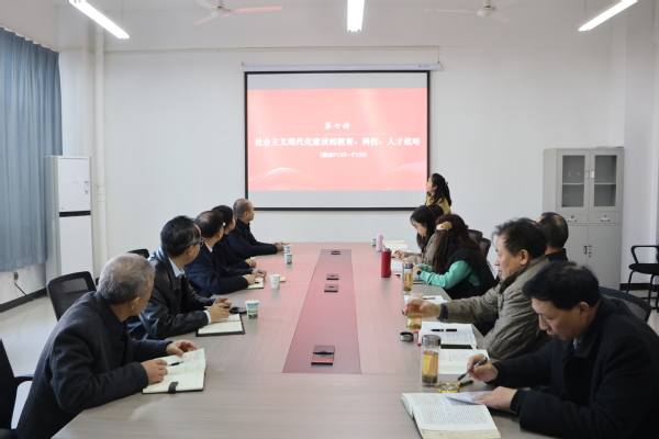 随后,调研组一行来到马克思主义学院,现场观摩了由校领导参与的思政课集体备课会。庞江华与教师们亲切交流,就思政课教学改革、教学方法的传承与创新等议题进行了深入探讨。