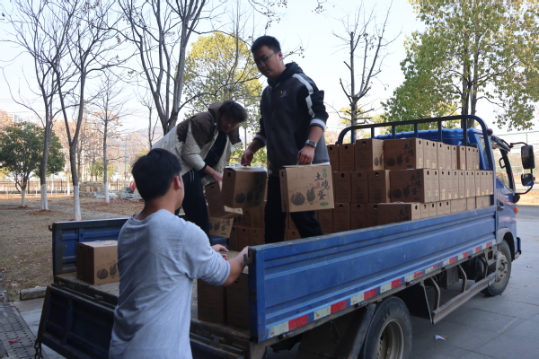 本网讯 1月9日下午,满载阳新县木港镇子山村农产品的运输车辆顺利抵达校园。此次由学校工会组织实施的采购活动,旨在有效解决帮扶村村民自产农产品面临的销售与变现难题,采购产品包括土鸡、土鸡蛋、菜籽油等,总价值约11.3万元。