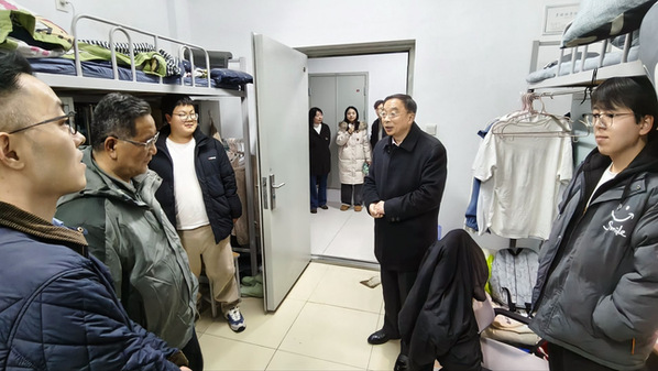本网讯 3月1日下午,在校校领导带领相关职能部门负责人、各学院负责人及辅导员一行,深入学生宿舍走访看望返校同学,向大家致以新学期的亲切问候和美好祝愿,实地了解同学们返校后的学习生活情况与实际需求。