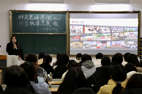 学生代表鲁毅上台发言,分享了自己在志愿服务中的心得体会和成长收获,激励同学们积极参与志愿服务,在服务中丰富经验、锤炼本领,以赤诚之心点亮成长之路,用实际行动诠释青春的价值。