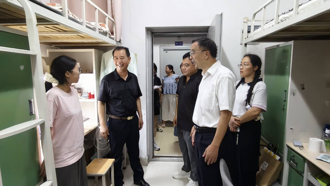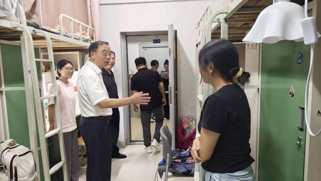 19时,李开灿校长带领学工部长刘健、人文学院书记周景斌以及全体辅导员老师们深入学生宿舍开展查寝,亲切探望专升本新生和返校学生。与学生面对面交流,关切询问生活需求与返校适应情况,耐心解答学业规划、校园服务等疑问,将安全管理与人文关怀深度融合、落到实处。