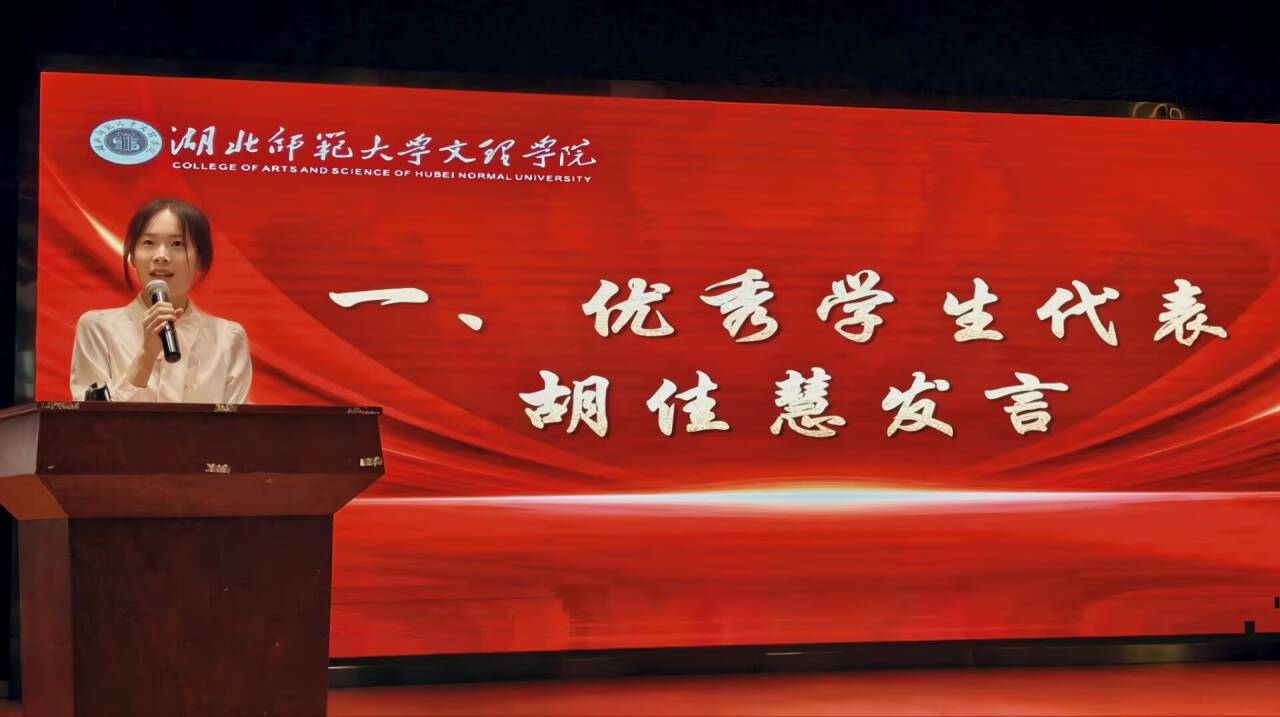 会上,优秀学生代表胡佳慧结合自身求学经历,为学弟学妹们带来成长“干货”。她鼓励新生们深耕人文领域,在经典与新知中丰盈精神世界;敢于跳出“舒适区”,在多元尝试中探索自身潜力边界;以自律筑牢成长根基,逐步培养独立思考与生活能力;同时常怀感恩之心,在集体互助中传递温暖,携手奔赴理想。