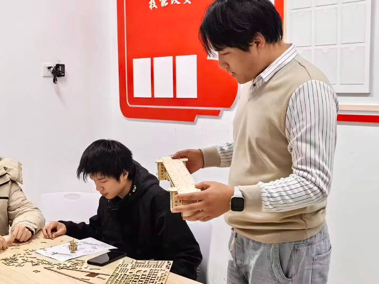 128日至11日,学院以“笔绘山河,巧手筑家园”为主题,开启了首轮实践活动。活动期间,书法区内,“国泰民安”“少年强则国强”等佳句力透纸背;绘画区中,锦绣河山、时代印记在笔下生辉。在拼图与模型搭建环节,同学们通过协作拼接红色地标、组装象征国家发展的模型,于指尖重温历史、感悟成就。辅导员深入现场,与学子共书共拼、互动交流,让爱国教育在双向共鸣中升温。