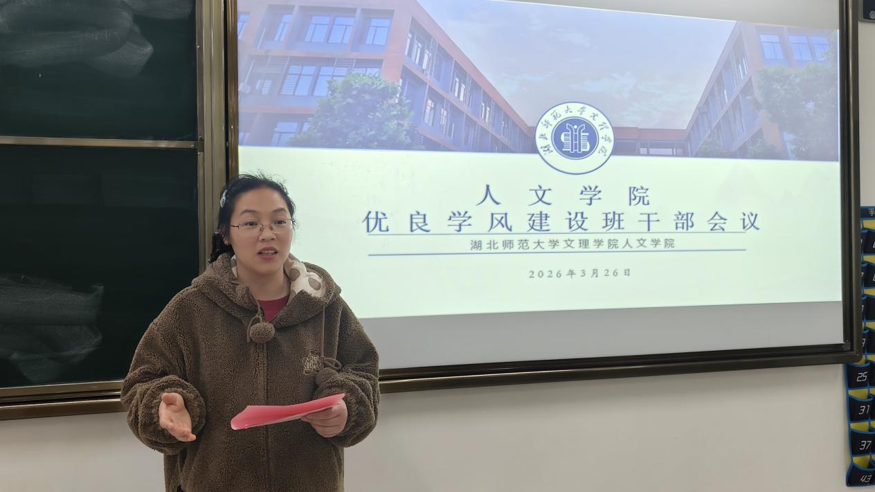 为进一步营造勤学善思、笃行进取的校园学习氛围,强化班干部的责任担当与先锋模范作用,2026年3月26日,人文学院于3号教学楼105教室召开优良学风建设班干部专题会议。学院院长熊子延、党总支书记周景斌、团总支书记胡文玉,丁书嫚、柯婧琼、高悦等老师出席会议,全体班干部及学院团总支学生会主席团全体成员参会。