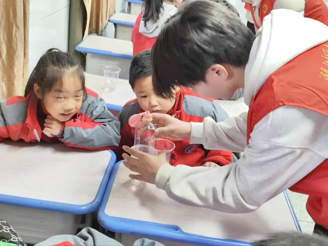 理工学部志愿者们分成三个小队,前往三个不同的班级带领小朋友们感受科学的魅力,带着小朋友一起做实验。实验过程中,小朋友们积极参与,热情高涨,踊跃回答问题,志愿者们帮助小朋友操作比较困难的实验步骤。