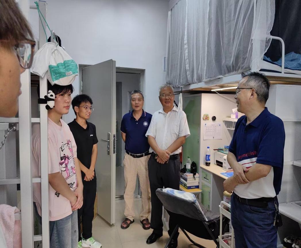 走访团队先后深入到2栋、7栋、11栋、12栋宿舍楼。每至一处,王胜国副校长都与同学们进行了亲切交谈,细致询问了大家入校后的适应情况,并就学业规划、生活起居等方面遇到的问题进行了现场解答和指导,勉励同学们要尽快转变角色,以饱满的精神状态投入到新学期的学习生活中,做到劳逸结合,注重身心健康发展。