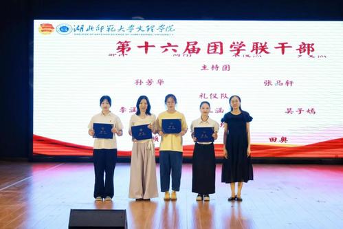 校团委书记陈荟芸、校团委指导老师周卿云、校团委指导老师米娜为第十六届团学联干部颁发聘书。
