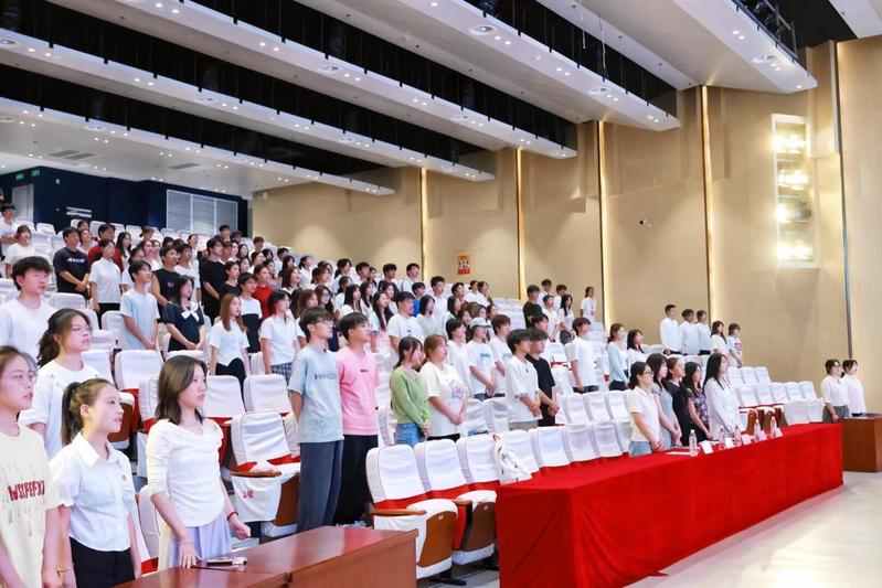 大会第一项,全体参会成员起立,奏唱《中国共产主义青年团团歌》,以铿锵旋律凝聚青春力量。
