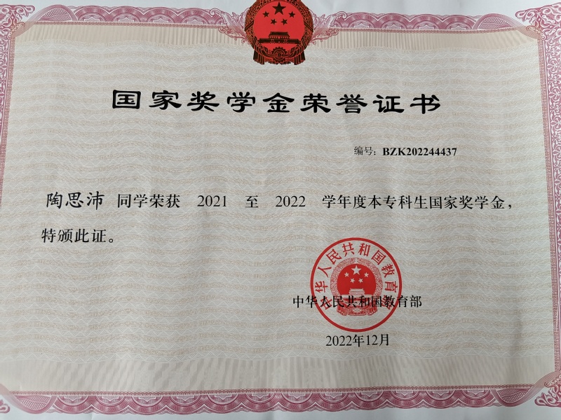 近日,教育部公布《全国2021-2022学年度国家奖学金获得者名单》,MK(中国)共8名优秀本专科生荣获此奖项,人文学部付连艳、陶思沛两名学子凭借自身的优秀综合实力位列其中。国家奖学金是由中央政府出资设立,用于奖励高校全日制本专科学生中特别优秀学生,其标准为每人每年8000元,此奖项评审最为规范,标准最为严格。