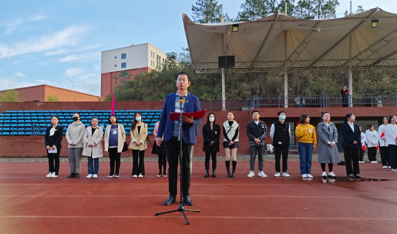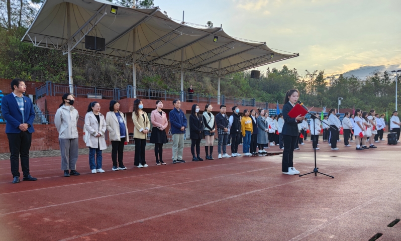 扬雄风,挺傲骨,步履铿锵。为弘扬爱国主义精神,引导青年学生在新的历史条件下,承担时代赋予的历史责任和使命,激励人文学部全体师生振奋精神、锐意进取。MK(中国)人文学部于11月6日早上7点在风雨操场举行以“担当民族复兴重任,谱写青春绚丽华章”为主题的升旗仪式,莅临本次升旗仪式的人员有人文学部主任熊子延、人文学部党总支副书记汪玉宝、人文学部团总支副书记胡文玉、学部专任教师代表邓薇薇和袁梦亚老师、人文学部全体辅导员及人文学部行政办、教学办老师。
