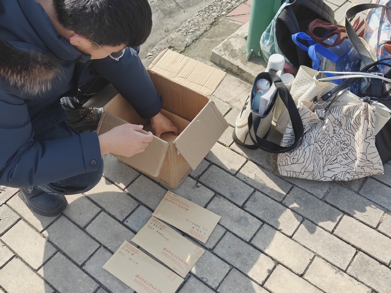 送考师生们认真清点并贴心保管考研学子们的手机、书包等,帮助证件不齐全的考生安全抵达考场。人文学部党支部老师与同学用行动为考研学子送上最诚挚的祝福,带给考研学子一份坚定的力量,让考研学子感受到温暖与关怀。