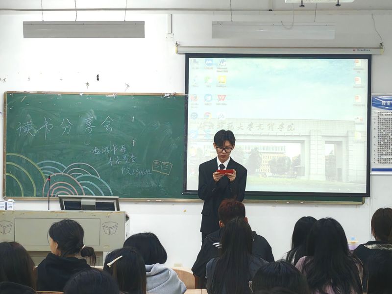 为激发同学们的阅读兴趣,培养良好的阅读习惯,并在浩瀚书海中汲取智慧,中文2306班于2024115日晚在2B405教室举行了以“遨游书海,沐浴墨香”为主题的读书分享会。此次活动旨在通过书籍的力量启迪思维,拓展视野,提升同学们的文化素养与人生境界。