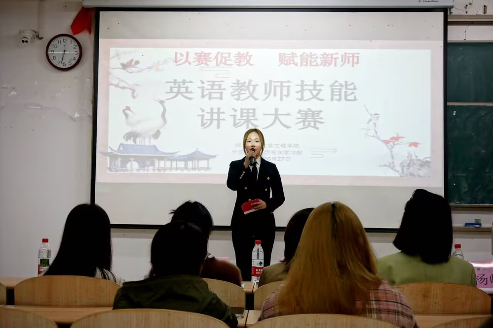比赛伊始,主持人汪诗曼阐述了“以赛促教”的赛事宗旨,强调其对提升教师专业素养、优化课堂教学质量的重要意义,并详细介绍了比赛规则与评分标准,让每一位参赛选手和现场观众都对大赛流程有了清晰的了解,为大赛的顺利开展筑牢了根基。