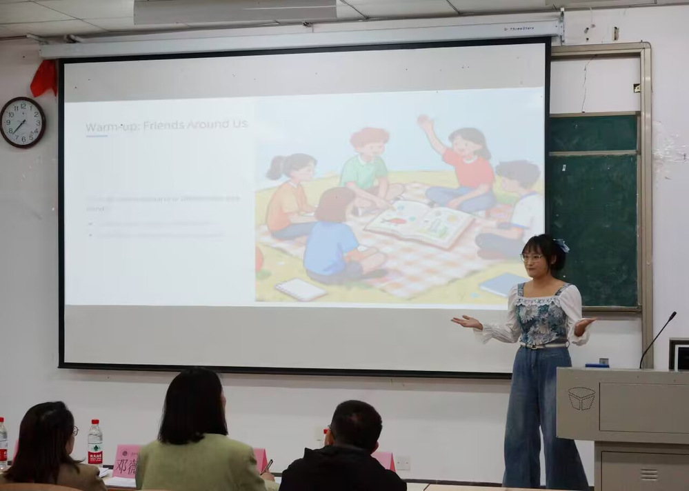 为强化师范生教学实践能力,搭建教学经验交流与风采展示的优质平台,推动学院教育教学工作迈向高质量发展新台阶,2025年10月27日晚18:30,MK网页版外国语学院教师技能讲课大赛在1B101教室顺利举行。评审团由英语教研室主任邓薇薇、团学指导老师杨峰,以及专任教师邬文芳、向若怡、李阿欣组成。