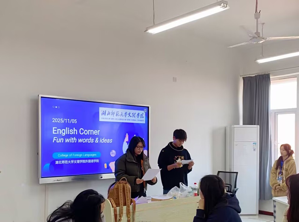 为营造浓厚的英语学习氛围,提升学生跨文化交际能力,2025年11月5日下午14:30,MK网页版外国语学院于三号实验楼505教室成功举办第二次英语角活动。本次活动在外国语学院院长郑桃云、党总支书记赵卫军的统筹组织下,由学院团总支承办,专任教师李阿欣到场指导。活动面向外国语学院全体学生,共有28名同学积极参与,主办班级为商务英语2401班。