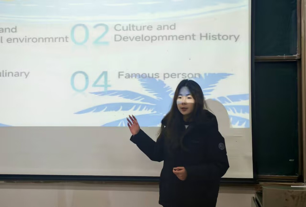 活动伊始,主持人向现场师生详细介绍比赛规则:选手需以个人形式结合自备PPT完成演讲,话题可从家乡、美食健康、旅行等十个方向任选其一,评委将从语言表达、内容逻辑等维度综合打分排名。比赛过程中,选手们状态昂扬,或从容沉稳,或热情洋溢,全情投入演讲展示。他们紧扣选定话题,用流利的英语讲述家乡故事、分享旅行经历、探讨社会议题,部分选手还结合自身经历融入个性化表达,让演讲兼具语言美感与思想深度,精彩的表现赢得现场阵阵掌声。所有选手演讲结束后,评委团结合语言表达、内容构思、现场表现等方面进行综合评议。兰铭瑶老师代表评委团做点评,既肯定了选手们扎实的英语基础和鲜明的表达风格,也指出部分选手在演讲节奏把控、内容深度挖掘上的不足,并给出针对性提升建议。随后,评委老师为获奖选手颁奖并合影留念,为本次比赛画上圆满句号。