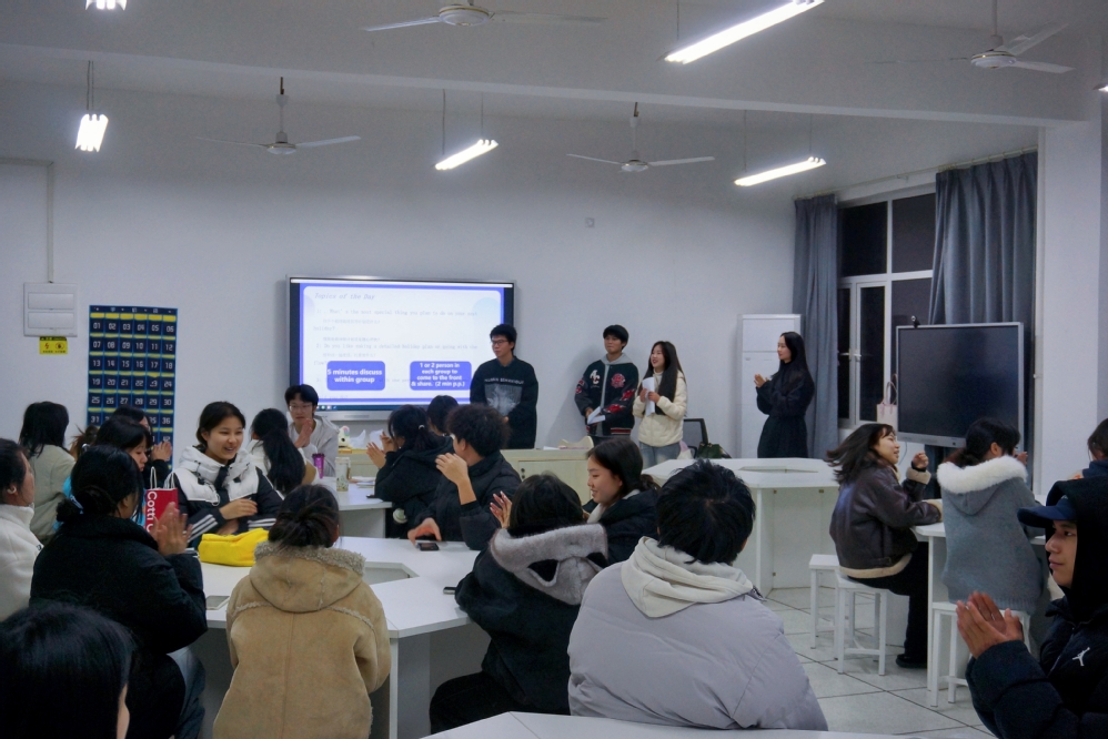 为营造浓厚英语学习氛围,提升学生跨文化交际能力,12月17日下午18:30,MK网页版外国语学院第五次英语角活动在三号实验楼505顺利落幕。活动由外国语学院院长郑桃云、党总支书记赵卫军精心统筹,学院团总支承办,专任教师余畅到场指导,主办班级为应用英语2404,2405,2406班,吸引全院42名学生积极参与。