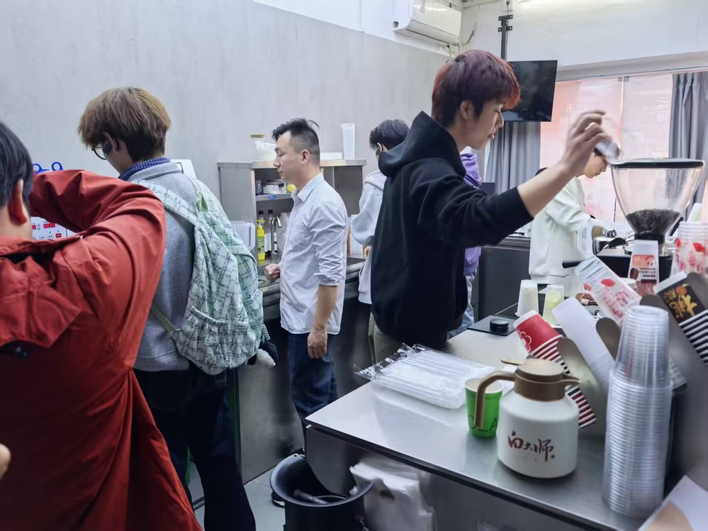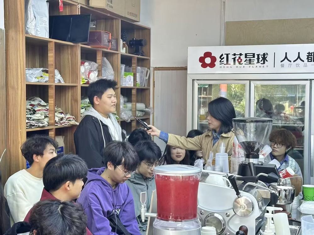 理论结合实践,方能深化认知。在精彩的分享会后,活动进入了沉浸式的实操体验环节。大学生们在张清及专业人员的指导下,分组参与了饮品制作项目。从原料配比到设备操作,同学们亲手实践,在每一个细节中直观感受基层创业的实操流程与核心技巧,现场气氛热烈,成果频现。