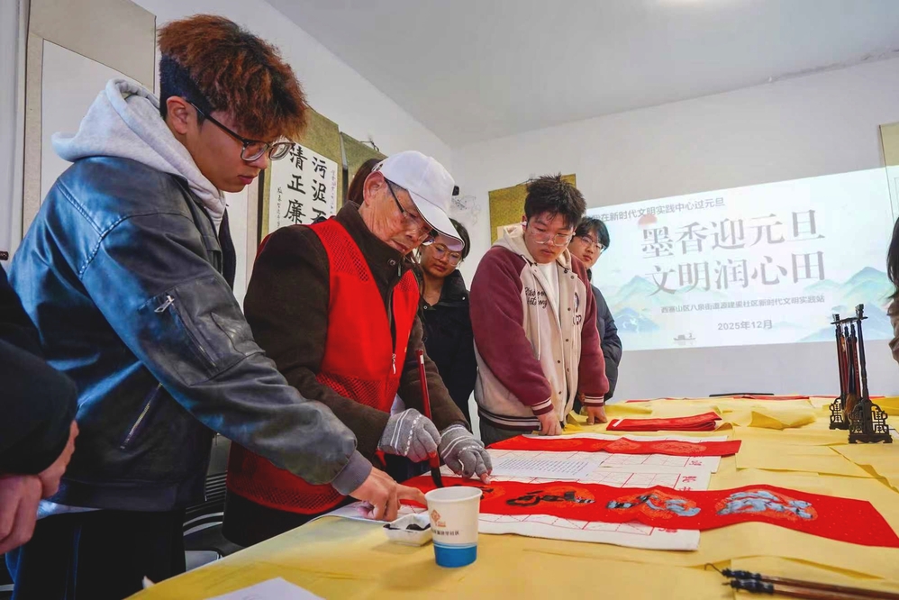 墨香迎元旦,文明润心田:我院学生参与源建里社区书法活动喜迎新年