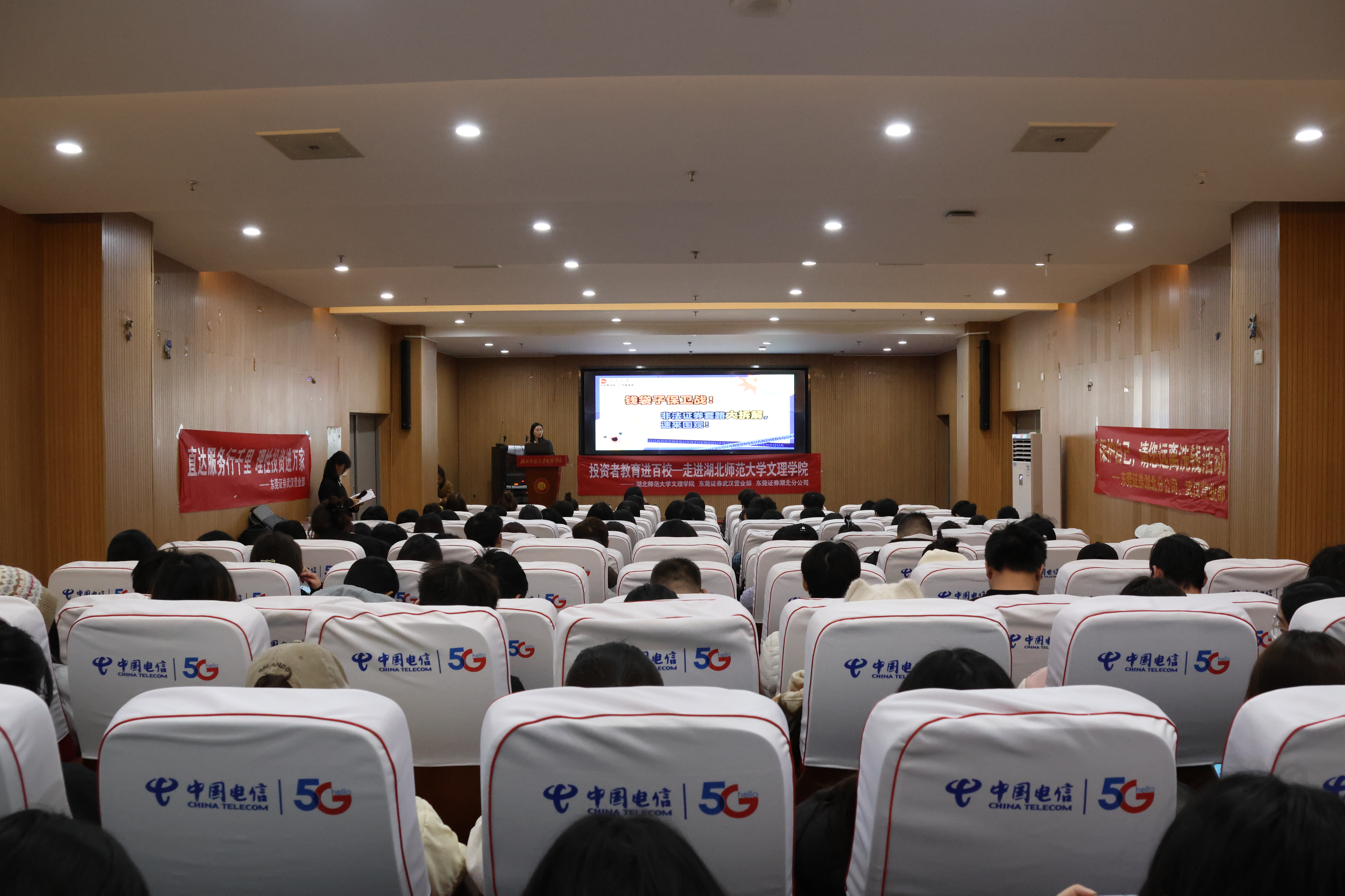 11月18日晚18:30,MK网页版经济与管理学院于图书馆报告厅成功举办“链通金融,智领未来”投资者教育宣讲活动,旨在提升学生金融素养,树立理性投资观与风险防范意识。活动特邀东莞证券武汉营业部投教老师蔡晓及理财顾问阮佳欣、李晓丽、任鑫洋组成的专业团队授课,经济与管理学院郑莎莎老师代表出席,互联网金融、经济学、财务管理专业大三的同学参加讲座。
