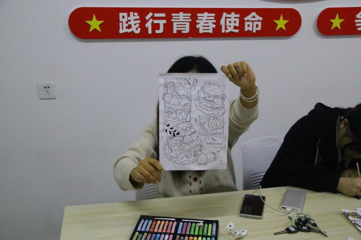 活动发放油画棒,由邓老师带领同学认识色彩三要素(色相、明度、纯度),并示范色彩叠加、混合、过渡技巧。学生在现场完成小幅色彩练习,渐变色训练和简单场景涂绘,让同学在轻松氛围中理解色彩表现能力。
