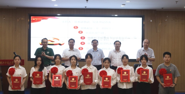 随着庄严的国歌响起,表彰大会正式开始“我志愿加入中国共产党……”全体党员举起右拳,跟随优秀党员代表柯康敏同志一同重温入党誓词。