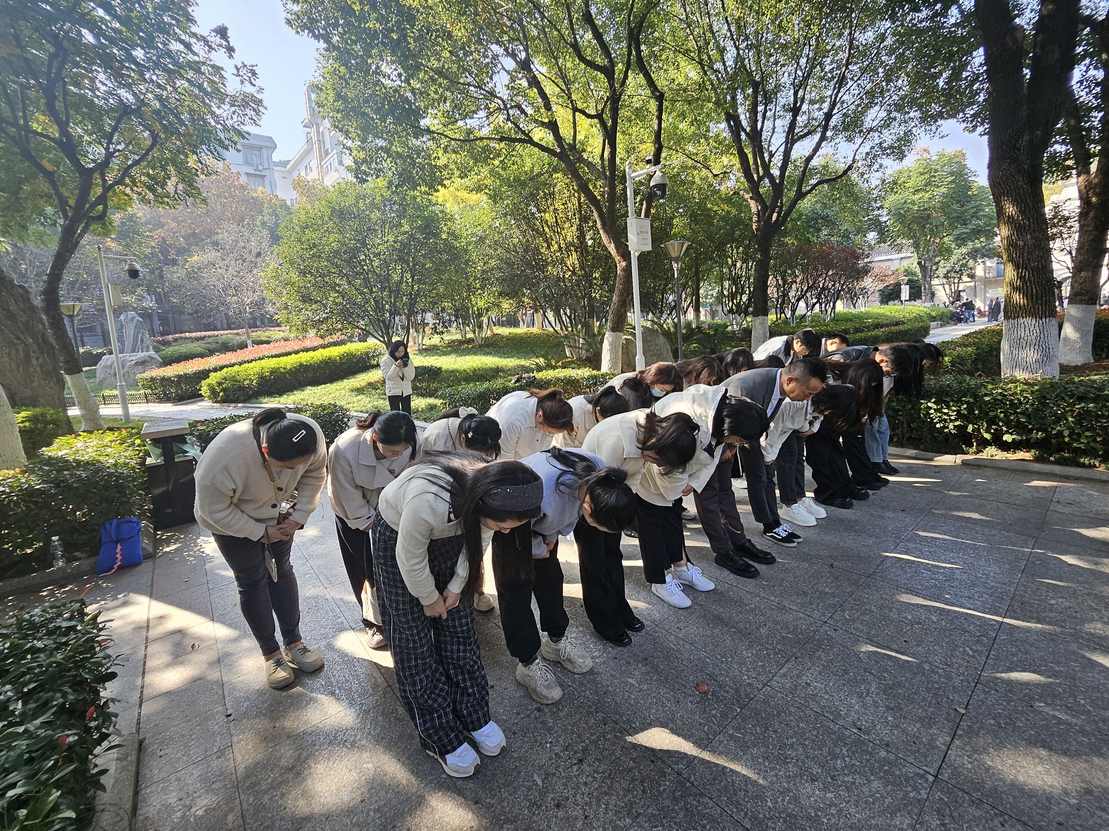 在中央监察委员会领导成员雕像前,活动氛围庄严肃穆。全体党员列队肃立,怀着无比崇敬的心情向革命先烈敬献鲜花,深深鞠躬并默哀沉思。鲜花寄哀思,默哀敬忠魂,这一庄重仪式不仅是对革命先烈的深切缅怀,更是对初心使命的再次叩问与坚守。
