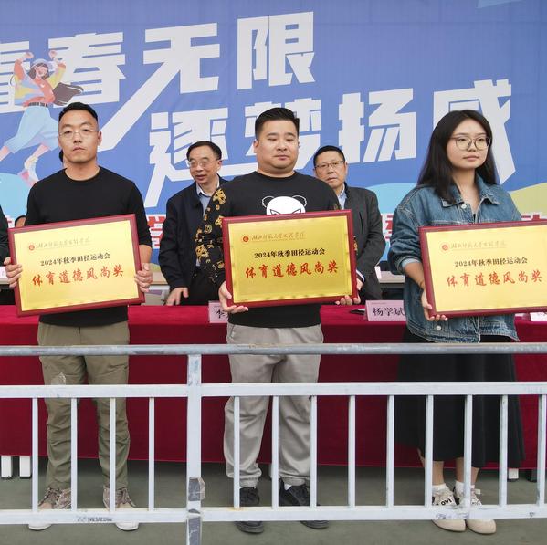 副校长张志华首先宣布了“体育道德风尚奖”和“优秀组织奖”得主,其中经济管理学部、理工学部、优能东风悦享汽车产业学院以及腾讯云大数据产业学院荣获“体育道德风尚奖”;迪科金融产业学院、教育与艺术学部以及人文学部荣获“优秀组织奖”。总裁判长何天畅宣布比赛成绩,迪科金融产业学院、翔宇航空产业学院以及人文学部分别斩获男子团体第一名、第二名、第三名;翔宇航空产业学院、人文学部以及迪科金融产业学院分别斩获女子团体第一名、第二名、第三名;翔宇航空产业学院、迪科金融产业学院、人文学部、东风悦享汽车产业学院、理工学部分别获得了团体总分的第一名、第二名、第三名、第四名和第五名。全体校领导为获奖集体颁奖。